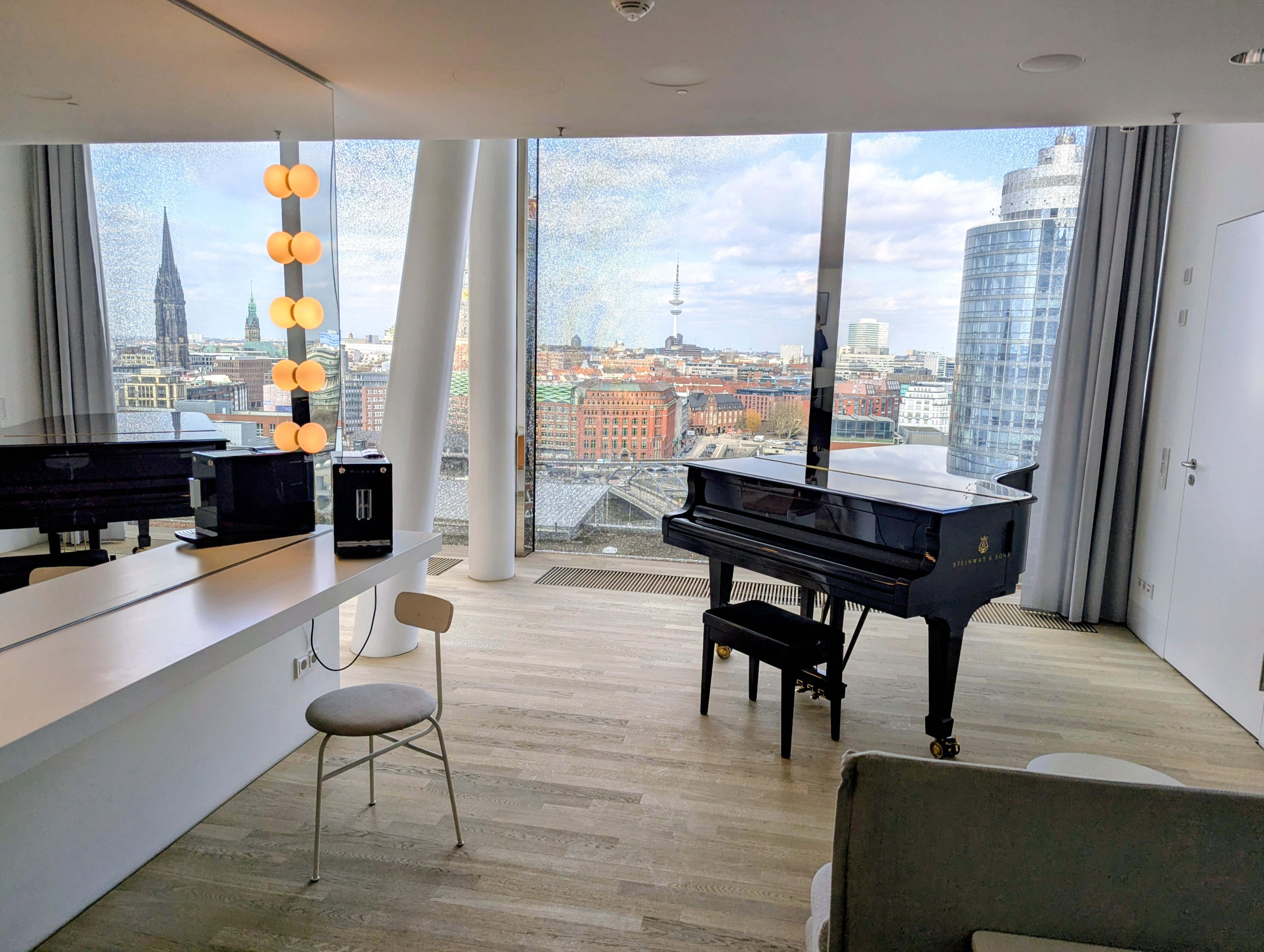 後日ホールに常駐しているスタインウェイ技術者の方にバックステージツアーもしていただきました。楽屋もナイスビュー!